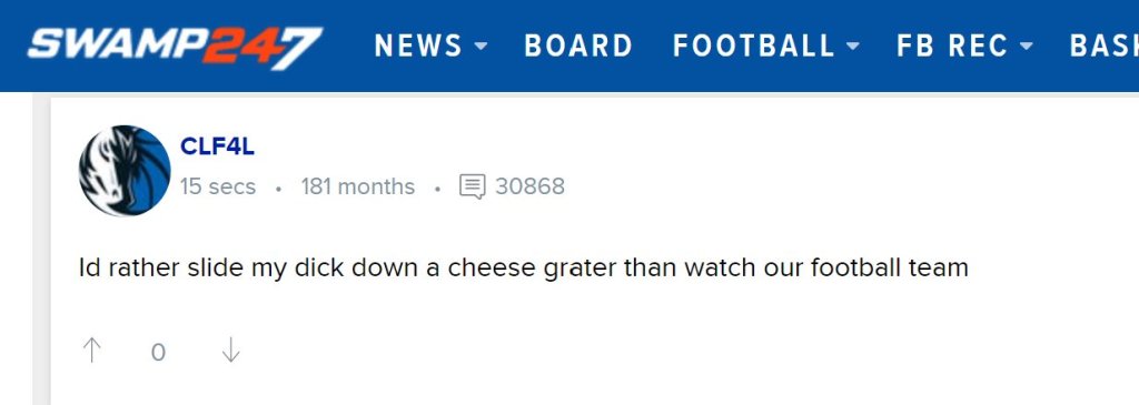 Again, innovation is the key to being a message board genius. We applaud this one for creating a new activity than watching Florida play whatever it is they played yesterday.