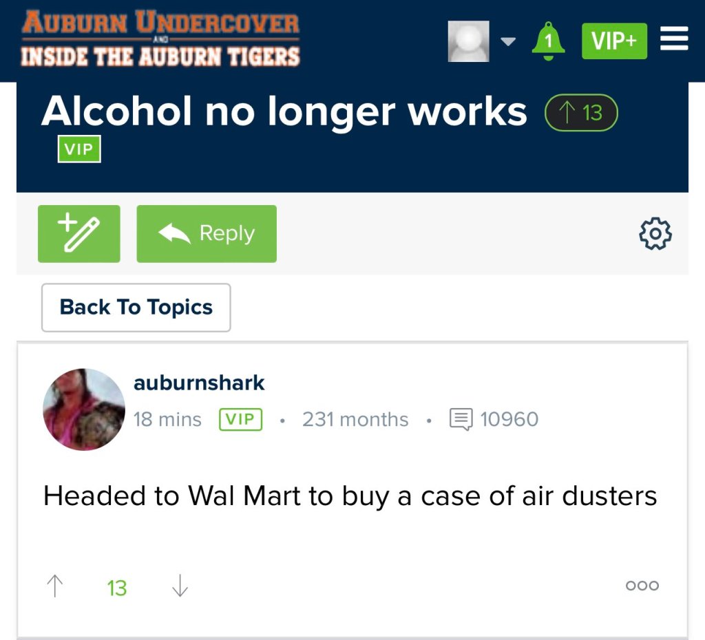 Things are so bad in Auburn they’re looking for innovative ways to numb the pain. While we don’t condone such practices, we applaud the cleverness of geniuses on message boards. Be original, be different, WDE.