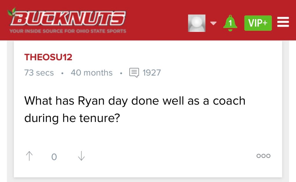 The people are saying this. What has Ryan Day done well as a head coach at Ohio State besides going 42-4 overall, 28-1 in the Big Ten, and 3 top 6 final AP polls. We need to talk about this more and we’re glad the geniuses of the message boards are finally on to this scam.