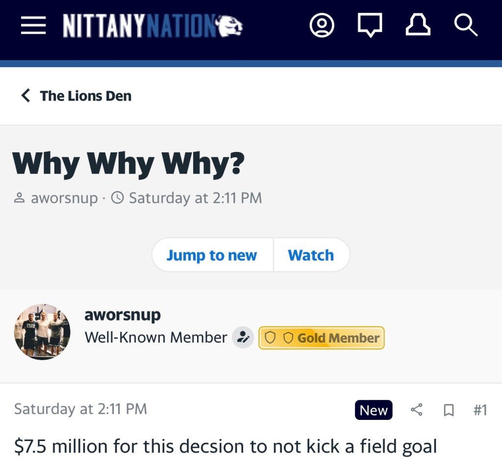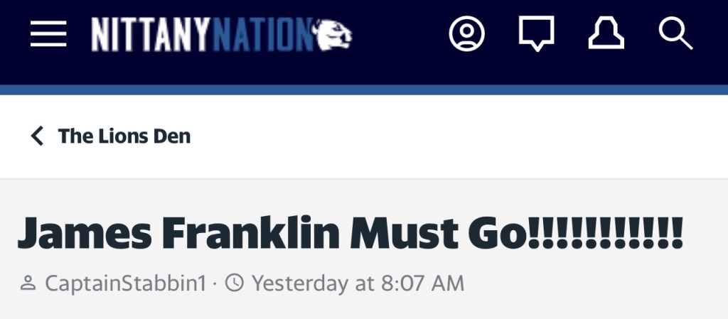 James Franklin’s first year in Happy Valley was 2014. Since then, his record against the top 5 is pretty, pretty, pretty bad. And he’s getting paid more than $7.5 million annually with those results. It makes no sense. He’s kept Penn State a stable, top 15 level program which is very good but the flirting with jobs to leverage a higher salary from PSU coming off a somewhat disappointing season has gotten out of hand. If he wants to stay by all means let him because things definitely aren’t bad but y’all have given up enough until he actually does something.