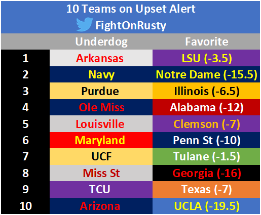 Below are 10 teams we’re putting on UPSET ALERT going into week 11: