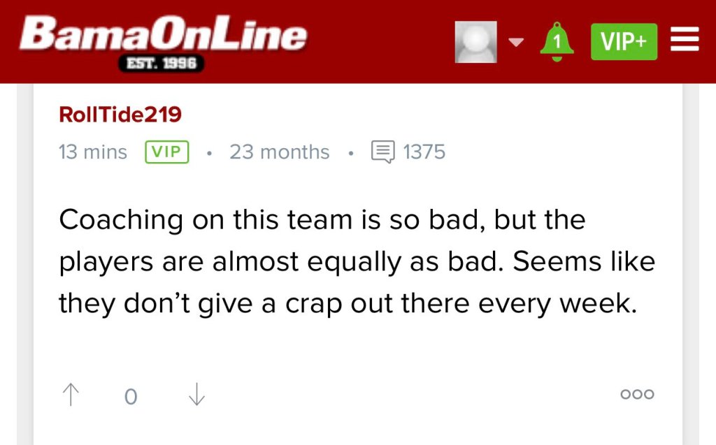 If there’s two things we know about Alabama it’s that they struggle with hiring elite coaches and recruiting 4 and 5 star players. We feel for this Alabama fan. He’s been deprived of good football for this first time in at least 13 years. We hope he can get past these dark hours with Alabama holding the #1 recruiting class per 247Sports.