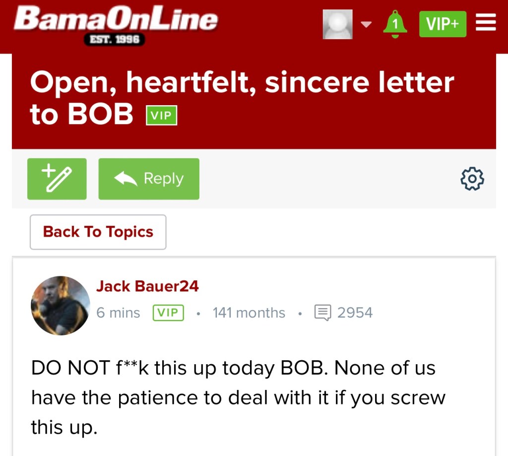 As far as Bama fans go for today, the mood is simple: