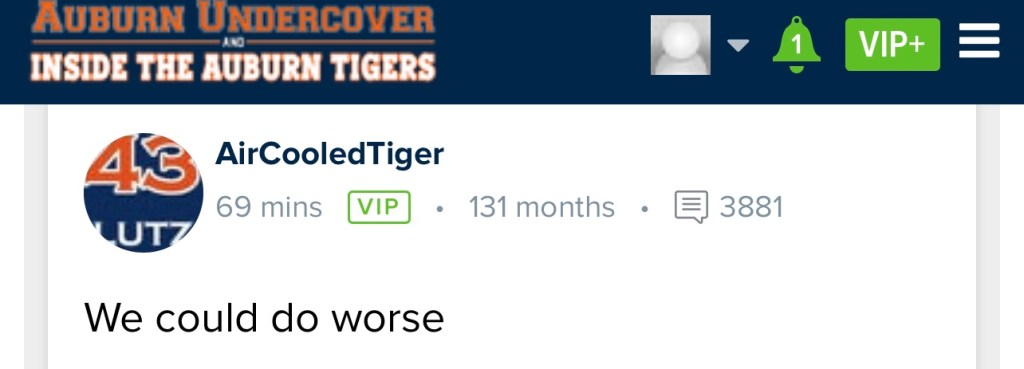 I’m struggling to get motivated about this Iron Bowl and I truly hate Auburn. I had kids in junior high call me “white trash” for simply for being a Bama fan, and I went to private school. And that’s the real rub here: Auburn fans lean on things like school pride and school traditions because realistically they can’t compete with Alabama in terms of a historically-relevant football program.