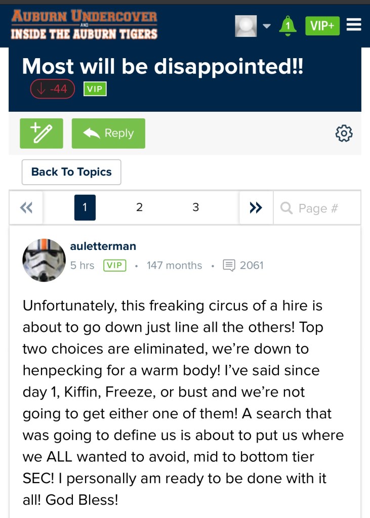 Auburn fans are concerned about the coaching search: