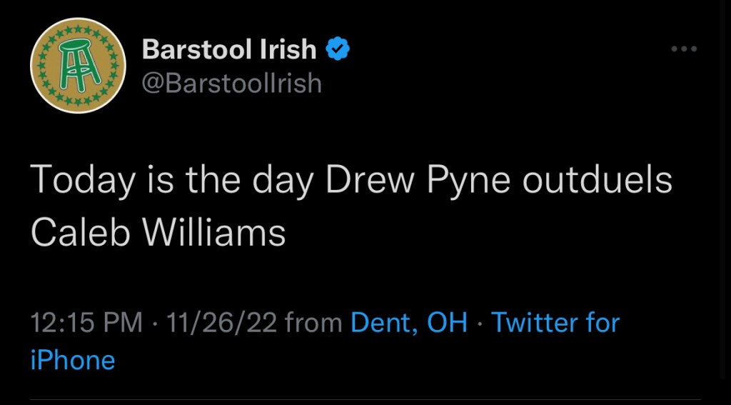 Saturday was not that day, sadly. Drew Pyne did play a great game, no doubt about that, but he wasn’t the one that shined the brightest. Notre Dame’s defense and Lincoln Riley’s playcalling allowed for the talent and skill of Caleb Williams to be on full display and provided several Heisman moments. As is commonly said in Notre Dame circles: “Maybe next year”.