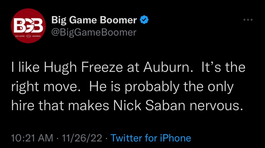 Hugh Freeze makes Nick Saban nervous? No, Nick Saban isn’t losing any sleep over a walking compliance issue of a head coach. Assault cases aside, while at Ole Miss Hugh Freeze had one 10-win season paying players under the table. Unfortunately for him, everyone can do it now. It’s makes “Bag Man” coaches ineffective. Nick Saban doesn’t give a damn about Hugh Freeze.