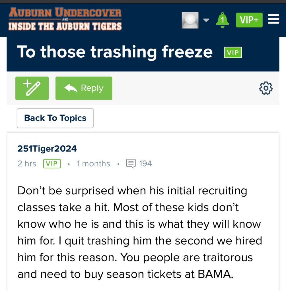 One problem is Auburn fans want and expect an immediate fix and sustained success at the top of college football. Admirable goals but some self-awareness will do y’all some good because it’s never been something y’all could do so learn to walk before trying to run.