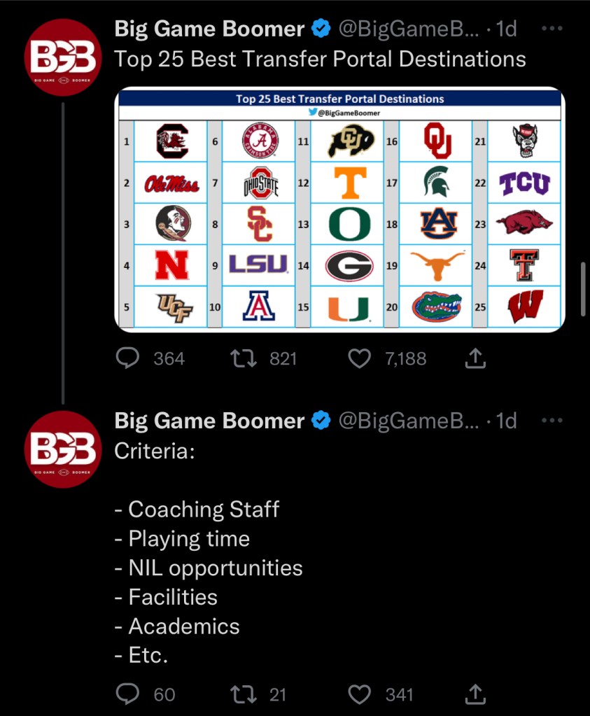 This is…bad. Why put a formula in for us to knock instead of making fun of the list itself? We all know the coaching staff, NIL opportunities, and academics are far superior at UCF than they are at Texas and USC. Right.