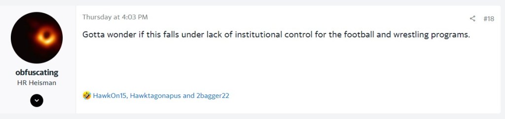 Uh no. It is unlikely that there is serious talk about a death penalty for the Iowa football program. Watching our 2022 offense is punishment enough. Still, it’s kind of weird that the hammer is only being dropped in Iowa.