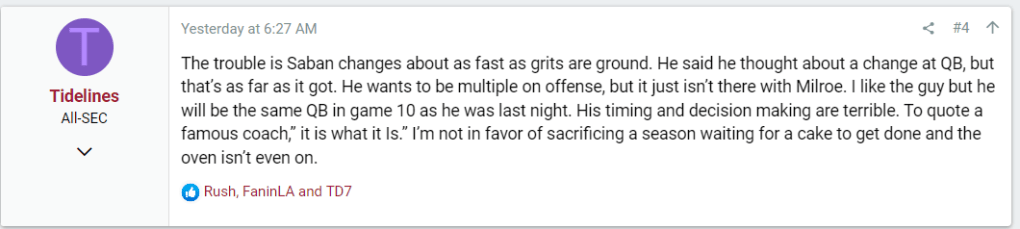 They played a talented team early in the year. They’ve done that a few times, but it is more of an exception than the rule. I’d still bet on them winning the SEC West and having the best chance at beating Georgia.