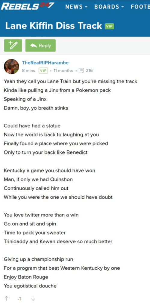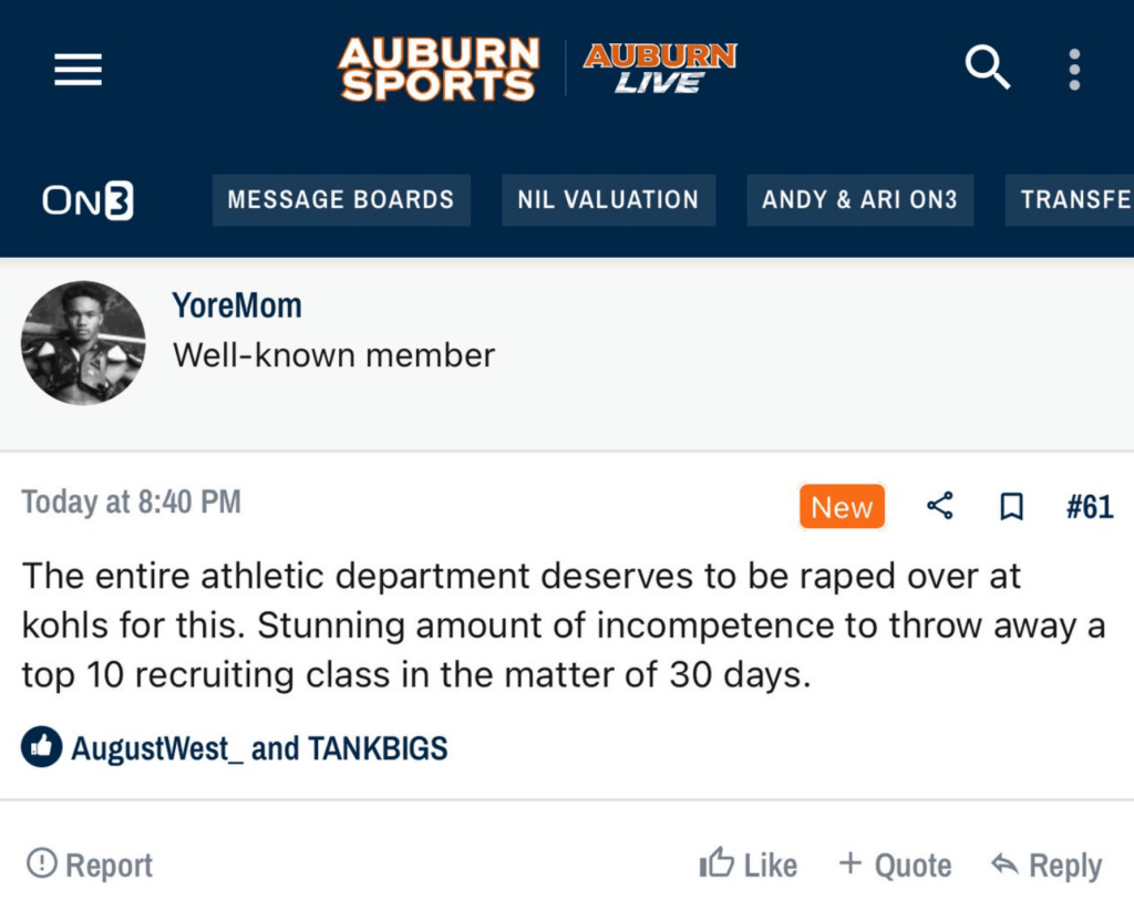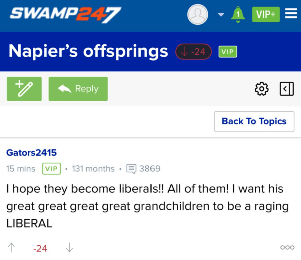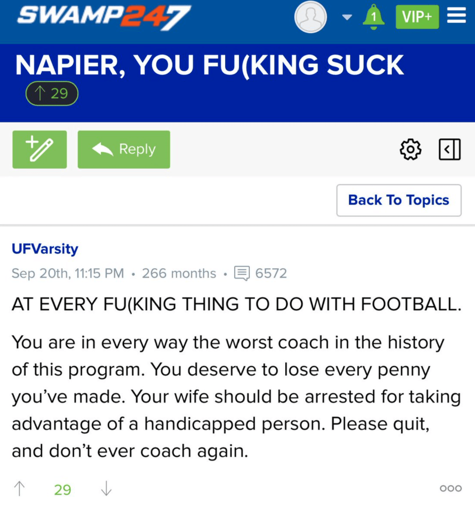24. This Florida fan wishes terrible things on Billy Napier and his family.