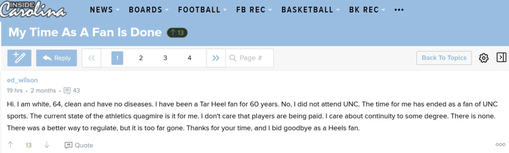 19. This North Carolina fan is white, clean, and disease-free, and he is DONE!