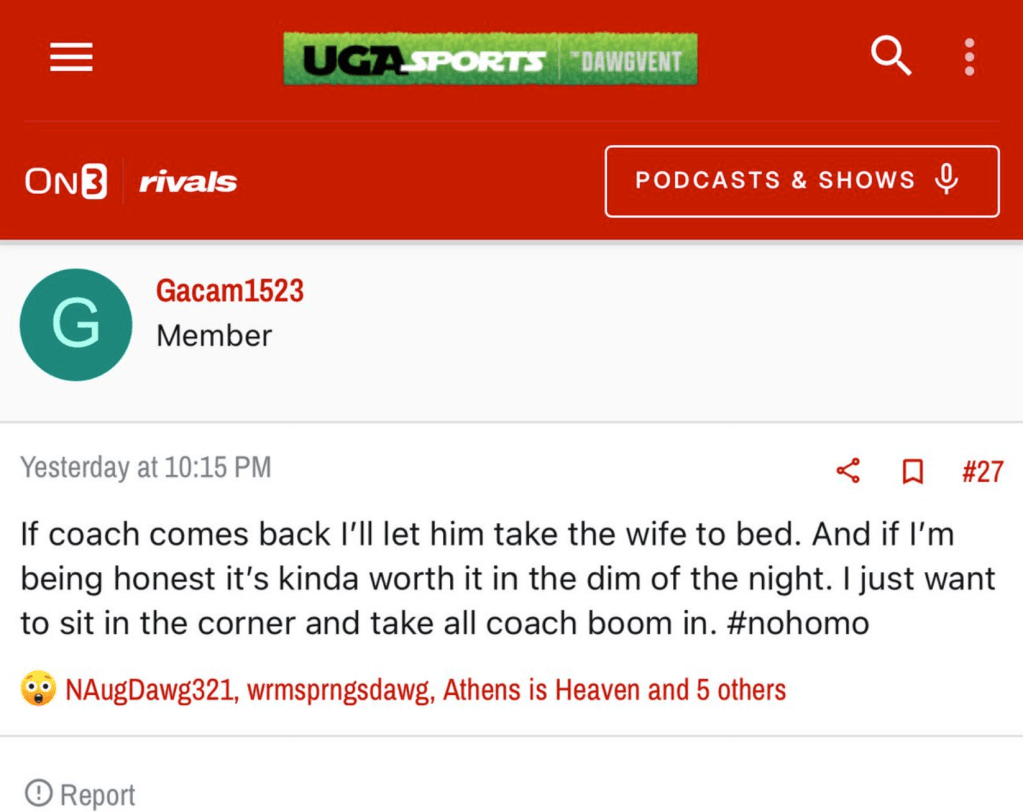 30. This Florida fan wanted Billy Napier’s wife arrested.