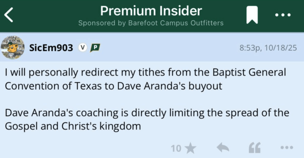 25. Dave Aranda’s poor coaching is impeding the spread of the Gospel.