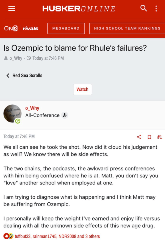 3. Ozempic may be to blame for Matt Rhule’s failures.