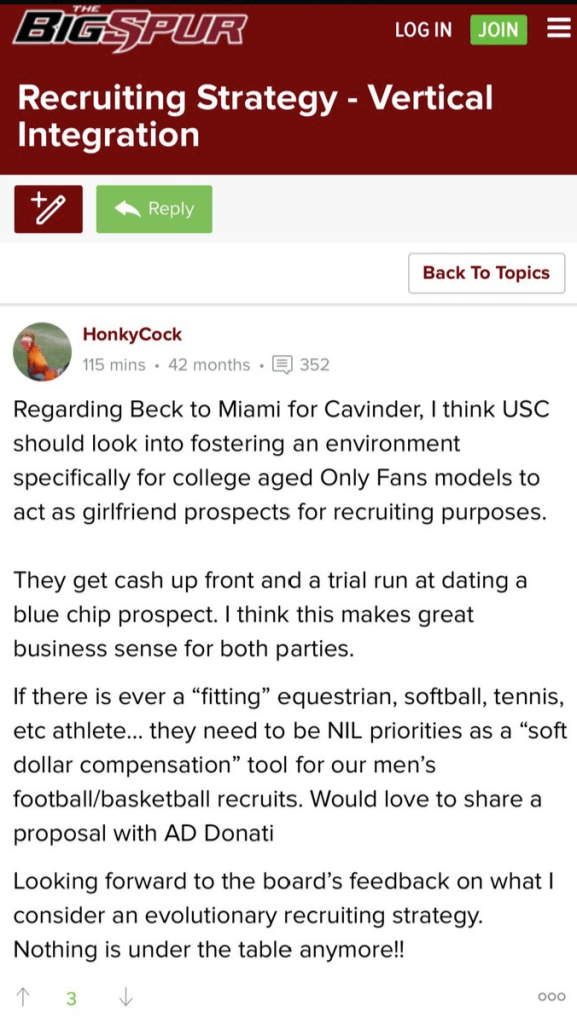 33. This South Carolina fan wants to implement a new recruiting strategy.