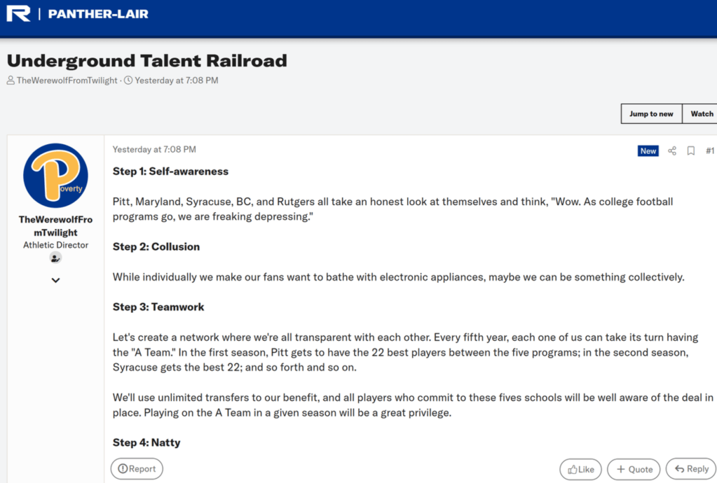 36. Pitt, Maryland, Syracuse, Boston College, Rutgers should all join forces.